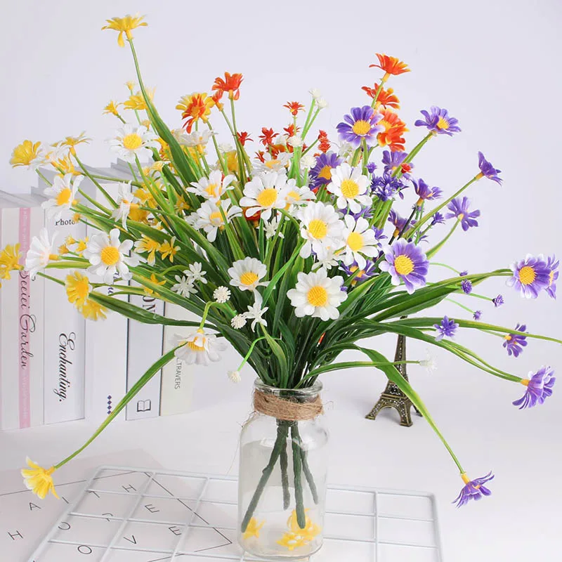 Cute 35 Heads Bouquet Color Daisy Plastic Flower Decorative Plastic Wild Flower Artificial Aquatic Plants Sunflower Home Decor Aliexpress Home Garden